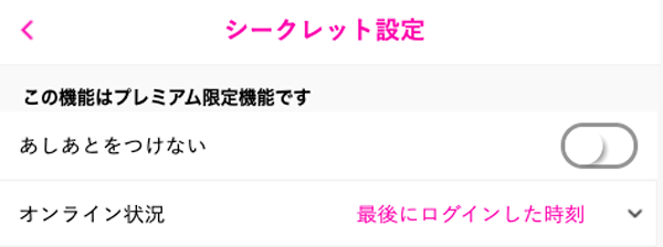 ラブアンは、女性の場合プレミアム会員になるとシークレットモードが使え、足あとを残さない設定ができるようになります。