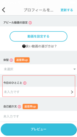 検索画面やプロフを開いたときに、プロフ写真と一緒に表示されるタイプのつぶやき・今日のひとことは、割と空欄のままで活用していない女性が多いです。