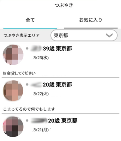 パパ活アプリのつぶやき・足跡・今日のひとこと