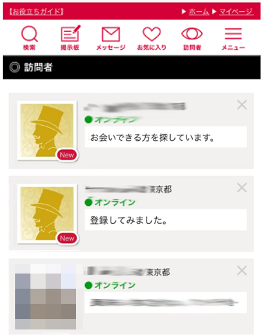 足跡を付けるデメリットはそんなにないので、気になった男性のプロフィールはどんどん見て行ってOKだと思いますよ!