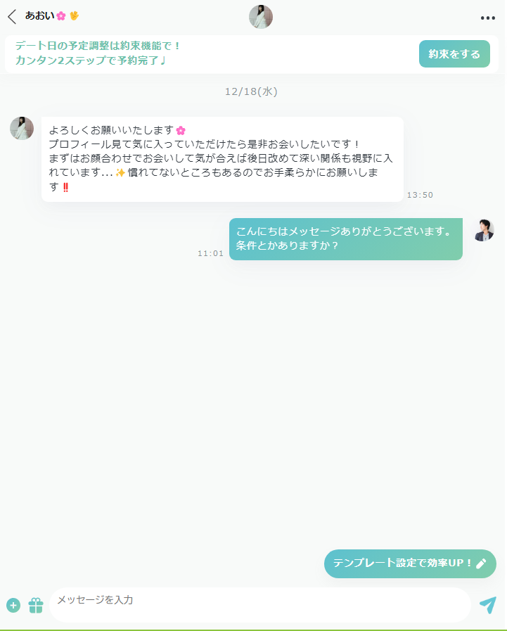 顔合わせをする前に、メッセージで条件をある程度すり合わせておきましょう。