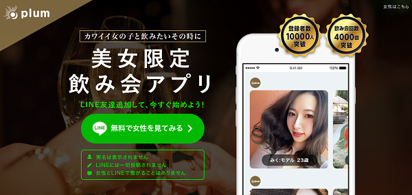 プラムは写真審査のみで登録できるギャラ飲みアプリです。