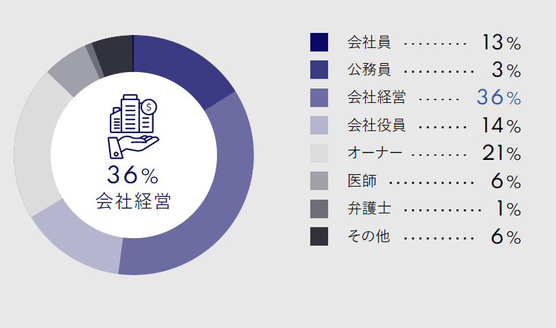 会員の半数以上の男性が会社経営や役員などの高所得者であることから、リッチなパパが多く利用していることがわかります。経済的にゆとりのある男性は、女性に対しても優しく振舞う紳士的な人が多いです。
