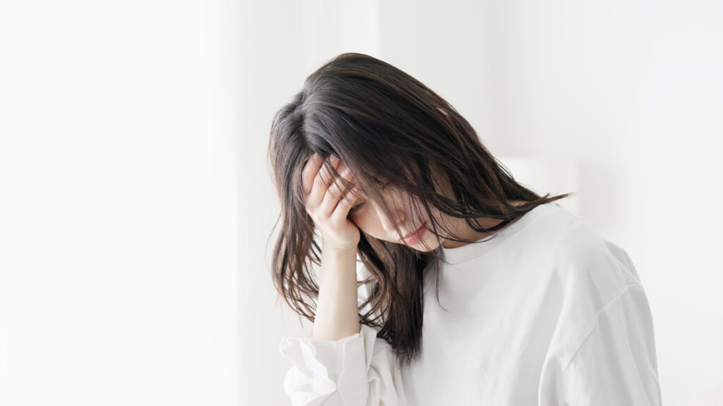 スマホを見て悲しむ女性