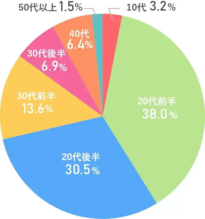 パパ活をする女性のメインの年齢層は20代で、特に大学生くらいの年齢の方が多くなっています。30代になるとガクッと少なくなり、40代や50代はほとんどいません。