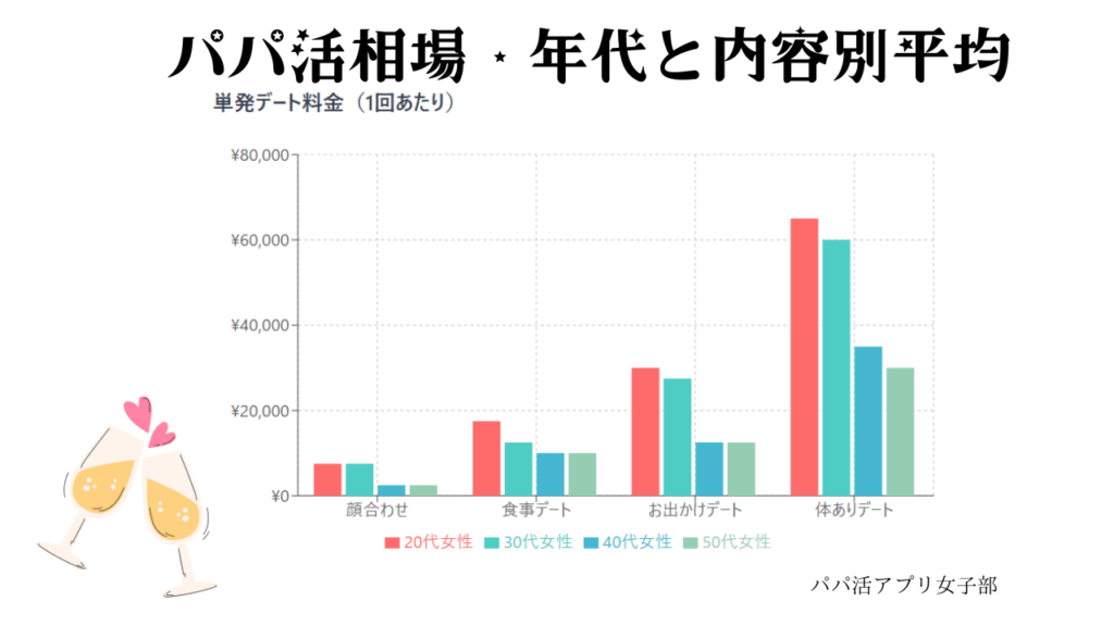 目安となるごく基本的な「パパ活相場」を整理したのが下記の表です。