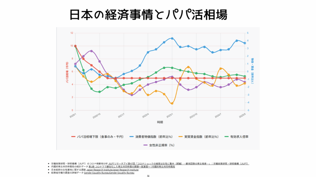 記事中では2025年最新事情を踏まえて、具体的なデート内容や年齢、地域、募集場所など細かく分けたパパ活相場について解説していきます。