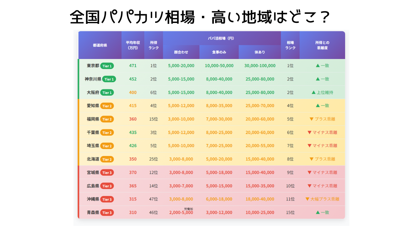 ここからは、地域によるパパ活の相場の違いについて解説していきます。