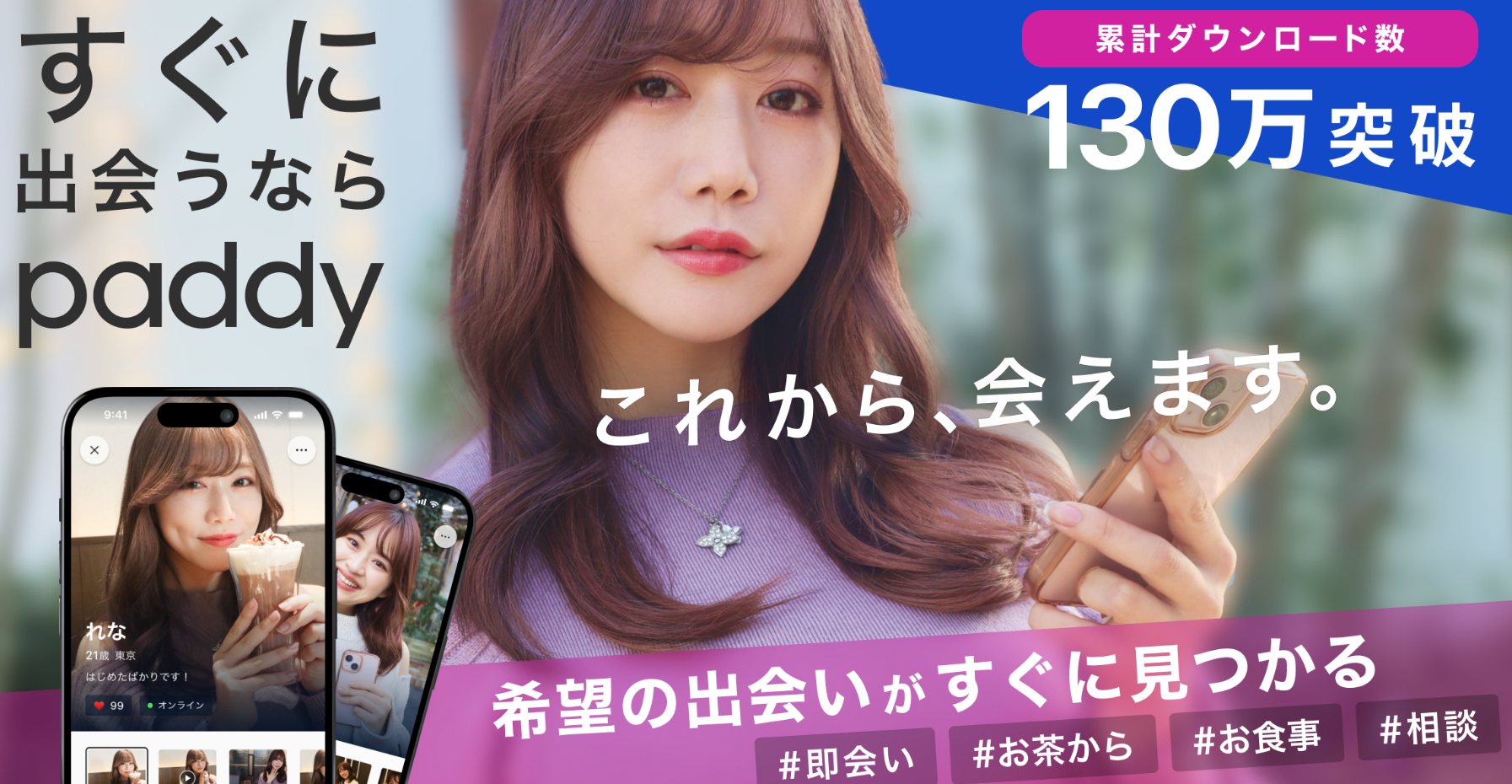 paddy(パディ)は、アプリダウンロード件数が100万を突破した人気パパ活アプリです。