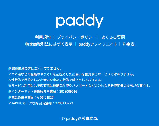 paddyの公式サイトには「パパ活などの金銭のやりとりを前提とした出会いを推奨するサービスではありません。」と記載されています。