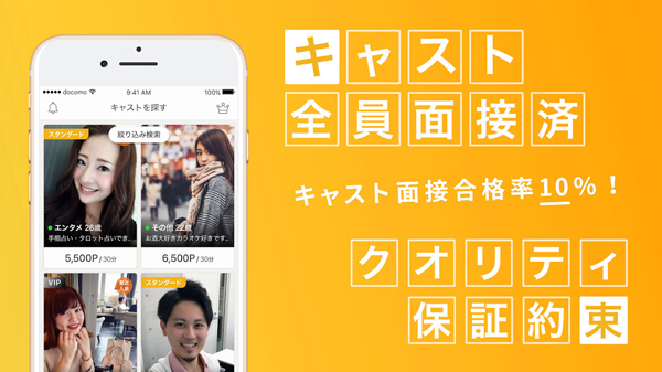 | 会員数 | アプリダウンロード数60万 キャスト数7,000人以上 |