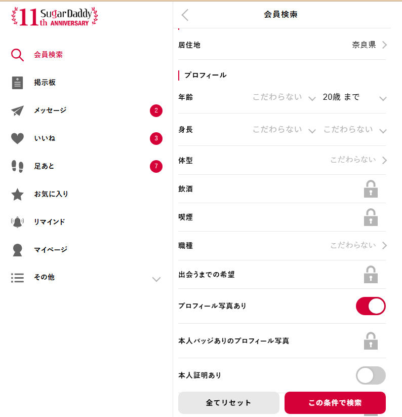 パパ活アプリやパパ活サイトの中では運営歴が長いため、とくに年配の男性の中では「パパ活 = シュガーダディ」といった認識も強く、太パパがたくさん在籍しているサイト。
