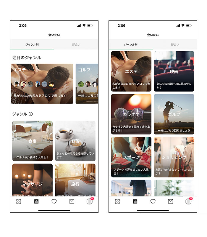 ペイターズにはジャンル別マッチングと即会い機能があって、目的別に男性を探せちゃうのが便利。