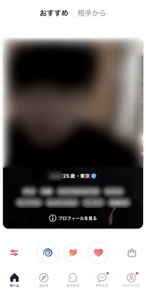ホーム画面にいくと、ウィッシュカードやタグが一致するおススメのお相手が表示されます。