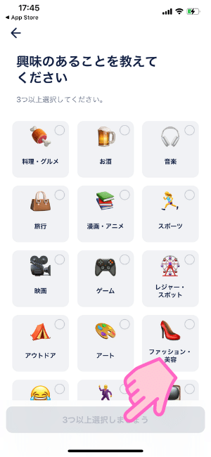 かといって、興味のないテーマまでチェックをしてしまうと、マッチングしたときに楽しくありませんので、やたらめったらチェックはしないようにしましょう。