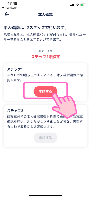 タップルでは年齢確認と本人確認を2ステップでしっかりと行います。
