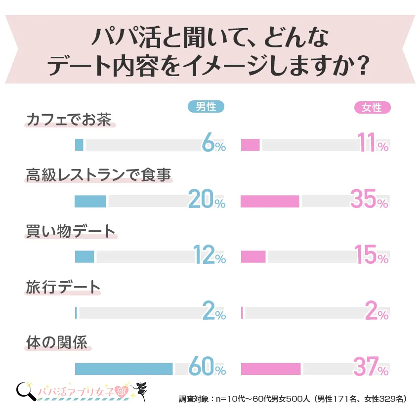 パパ活アプリ女子部では、パパ活に対する世間のイメージや実態を客観的に捉えるために、Web上でアンケート調査を実施いたしました。その調査結果をご報告します。