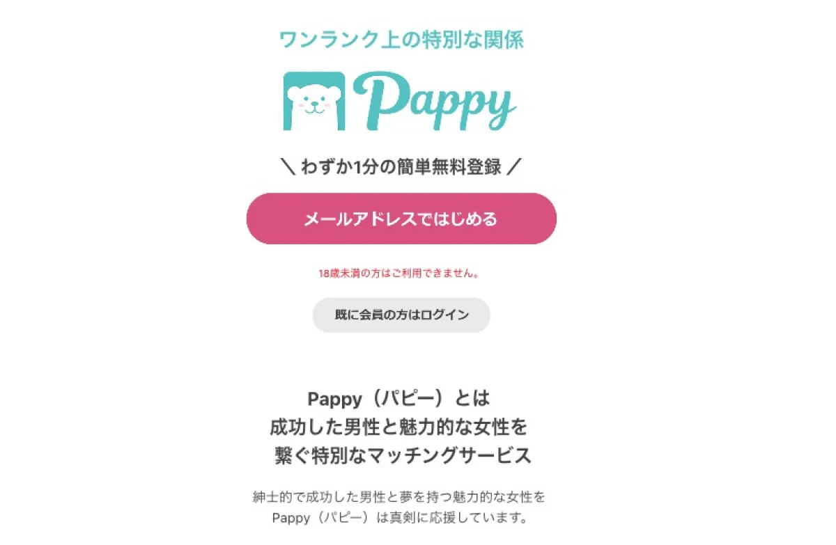 Pappy(パピー)は、余裕のある男性と夢を叶えたい女性が集まるマッチングサイトです。